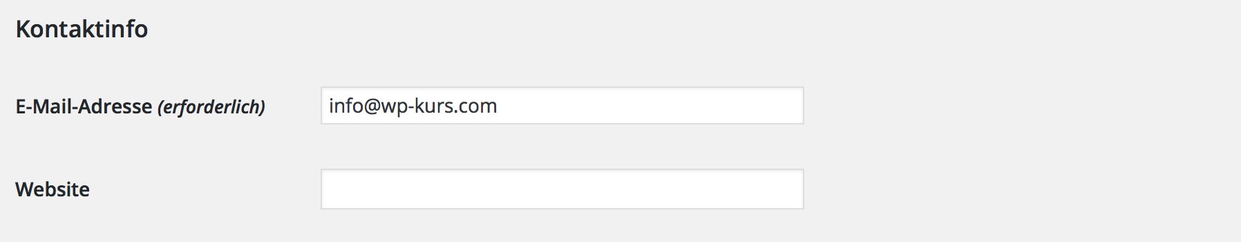 Beachten Sie, dass Plugins die Möglichkeit haben, diese Felder anzupassen und zu erweitern. In einem späteren Schritt werden wir ein Suchmaschinen-Plugin installieren. Nach der Aktivierung, werden Sie merken, dass es an dieser Stelle weitere Felder einfügt, zum Beispiel eines für den Link zu Ihrem Facebook-Profil.