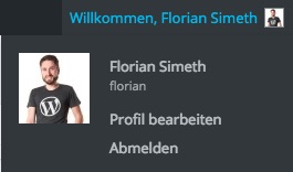 Ihr Benutzername (in unserem Fall „florian“) und der Link „Profil bearbeiten“ verlinken auf die gleiche Seite: Ihr Benutzerprofil. Dieses finden Sie auch über das linke Menü unter „Benutzer“ -> „Profil“.
