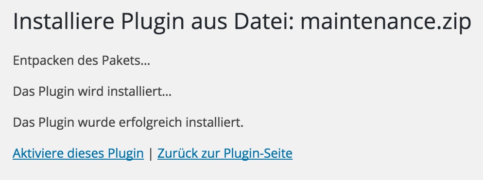 Nachdem das Plugin hochgeladen wurde, wird es installiert. Das sieht ungefähr so aus: