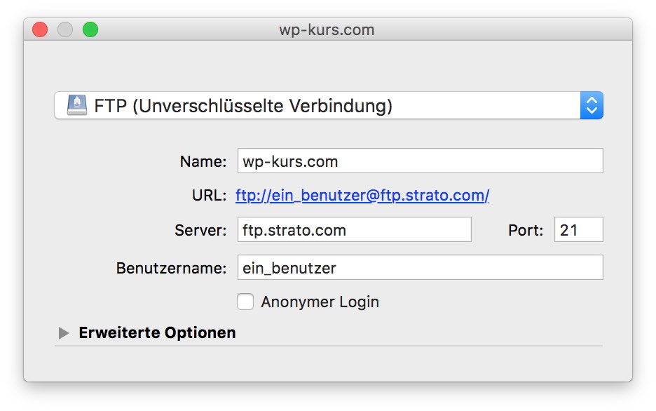 Nun benötigen Sie ein spezielles Übertragungsprogramm, einen so genannten FTP-Client (wie oben erwähnt). Öffnen Sie Ihren FTP-Client und verbinden Sie sich mit Ihren Zugangsdaten mit dem Server Ihres Hosting-Providers. Die Zugangsdaten finden Sie online bei Ihrem Provider: