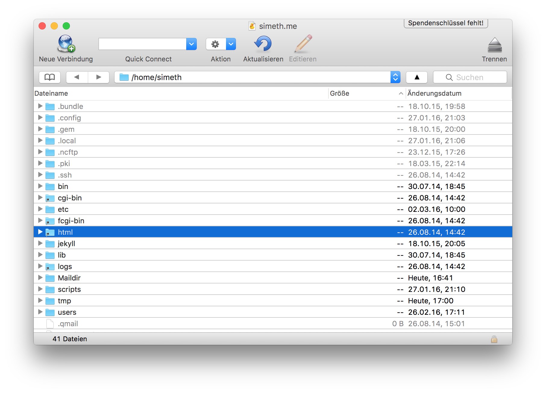 Nachdem Sie die Verbindung hergestellt und den entsprechenden Ordner gefunden haben, laden Sie die Dateien hoch. In Cyberduck müssen Sie die Dateien einfach mit der Maus in das FTP-Fenster ziehen. Je nach Verbindungsgeschwindigkeit kann der Upload-Vorgang schon ein paar Minuten dauern.