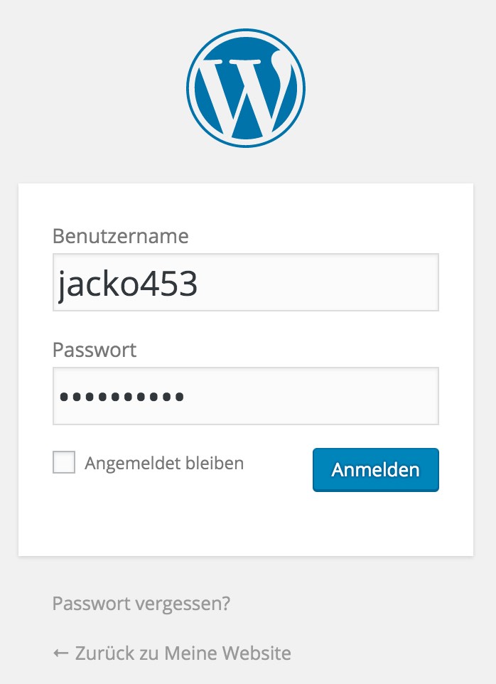 Mit einem Klick auf ‚Anmelden‘ gelangen Sie zur Anmeldeseite, um sofort mit der Inhaltspflege Ihrer WordPress Seite zu beginnen.